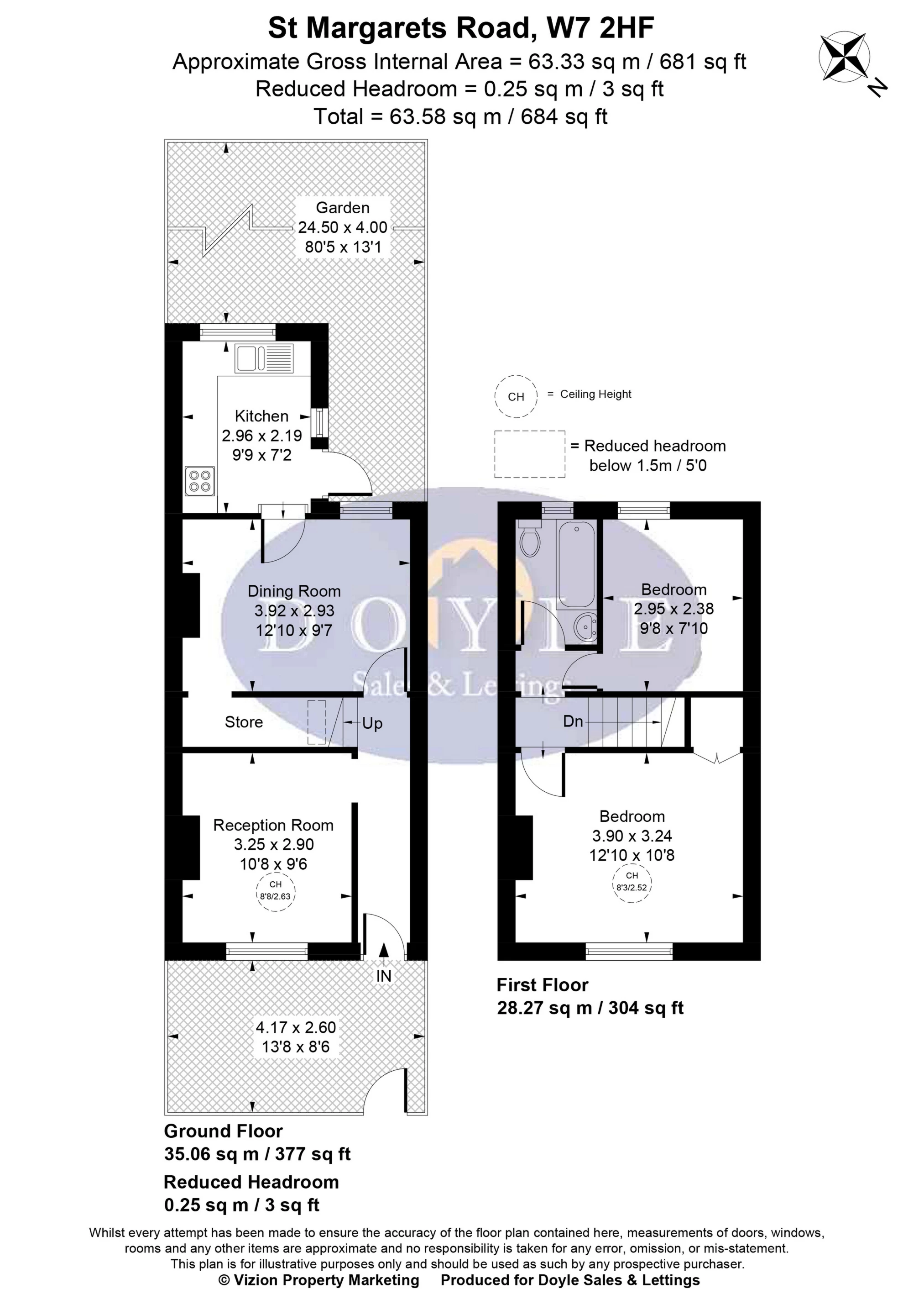 Chain free, 2 double bedroom, family home, with large south facing rear garden. Accommodation comprises entrance hallway, front reception room, dining room and kitchen. On the first floor there are two double bedrooms and great sized loft which offers an opportunity to convert and create more living space. The property benefits from a large private rear garden, over 80 ft in length and South facing. St Margarets Road is situated close to the Grand Union Canal and the popular Fox Public House, in a great school catchment area, within easy access to Hanwell (Elizabeth line) and Boston Manor (Piccadilly line) stations, road networks, bus routes, parks and shops. This property is offered with vacant possession.